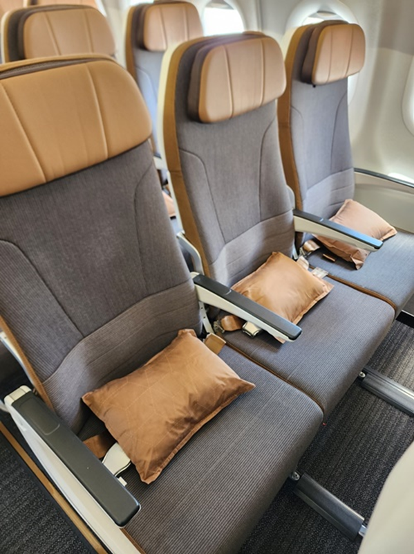 首先進入機艙看到座椅,還好位子不至於太狹小。